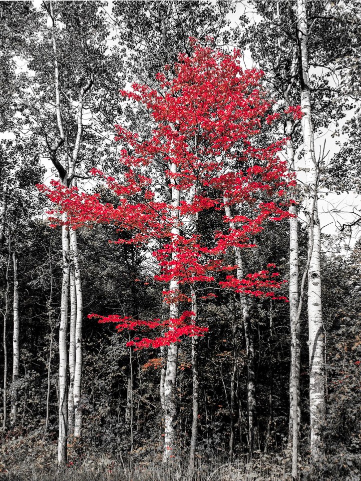 What a nice photo, Milo! I especially love the tree in red with the black and white background.