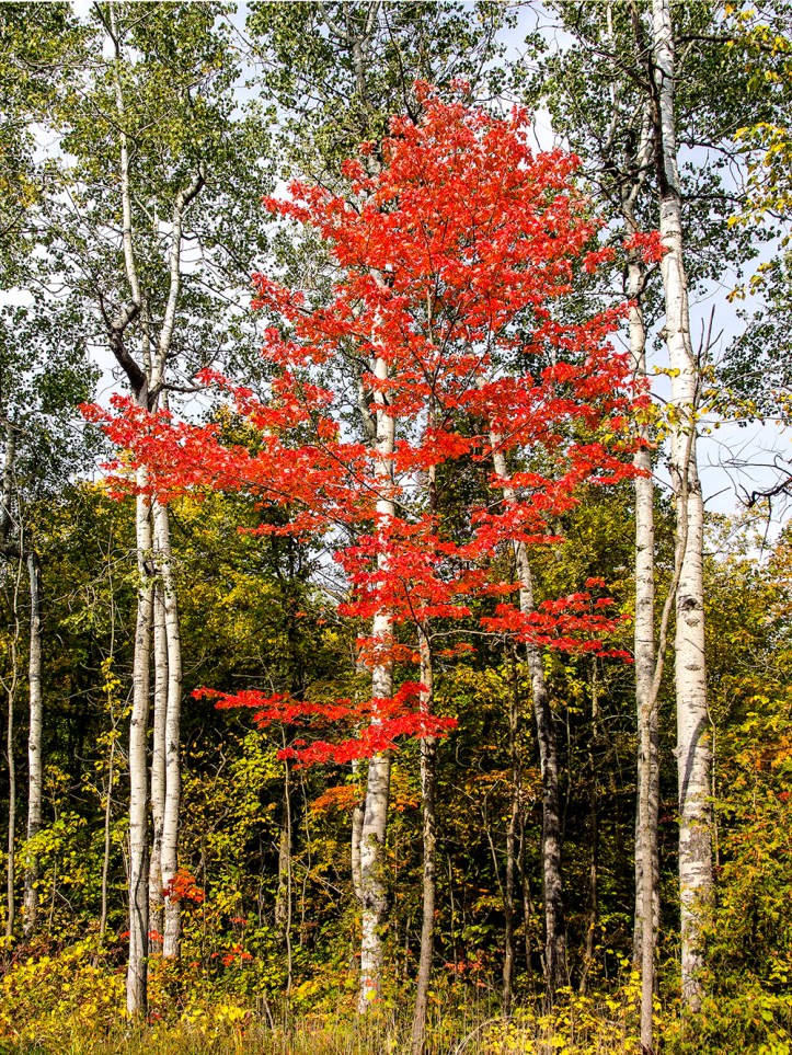 I got this image of a red maple leaf in a stand of birch on Frog Hollow Road.