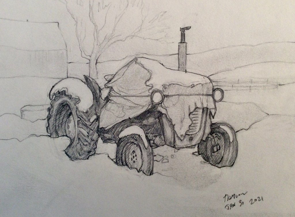 Your pencil sketches are truly beautiful Erica! I especially love the stable and the tractor.