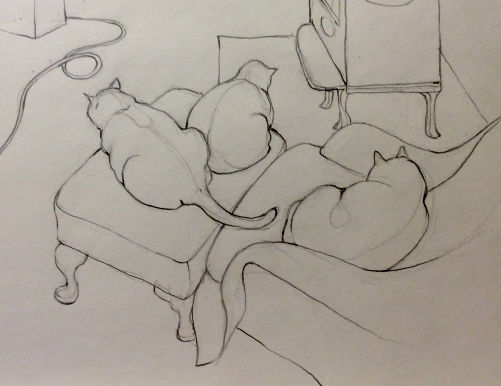 I was particularly struck by the three cats drawing. Love the composition, repetition of forms, the graphic shapes. Truly superb!