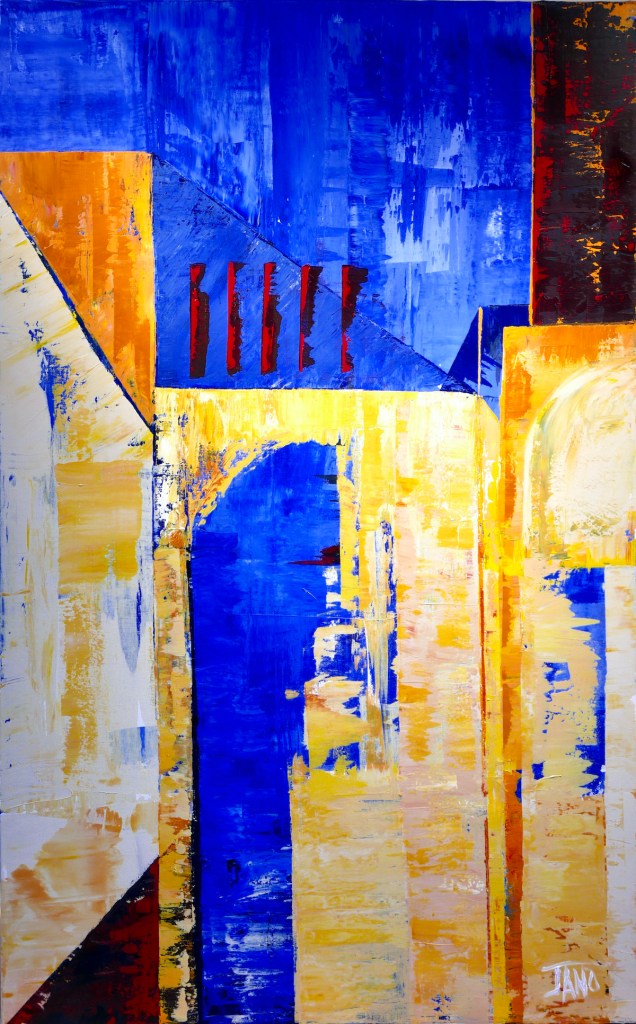 A photo or reproduction of work online cannot do justice to a painting. Apart from the substantial impact of a large canvas on the viewer’s experience, the texture, the depth, the lighting, the palette knife strokes–the sculptural effect of the work–are lost or highly diminished in an online reproduction.