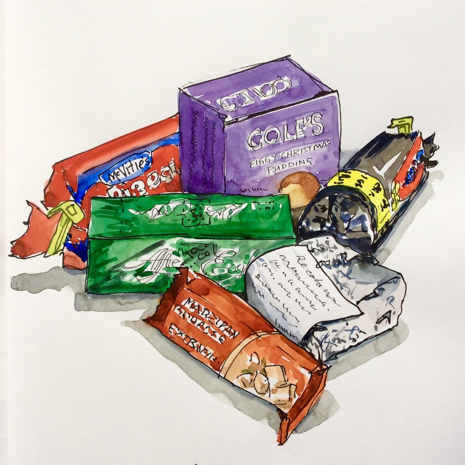 Pencil and watercolour in Hand-book watercolour sketchbook, 8 x 8 inches