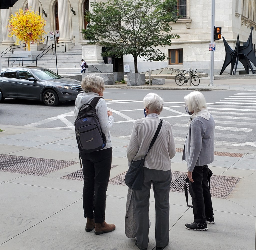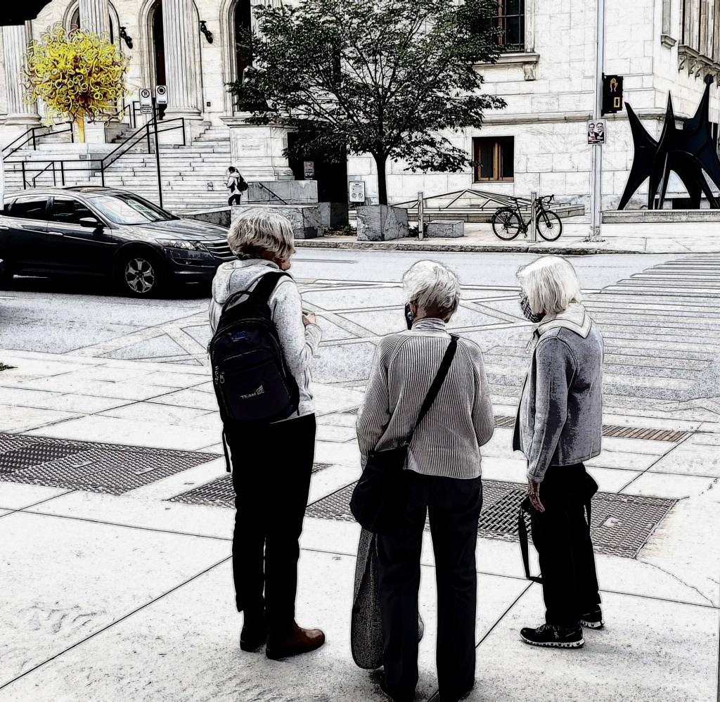 Here is my photo of the three women outside the Montreal Museum of Fine Arts on 1 October… normal and “cartooned” 😂