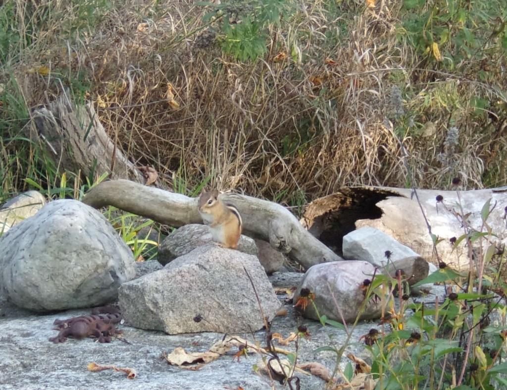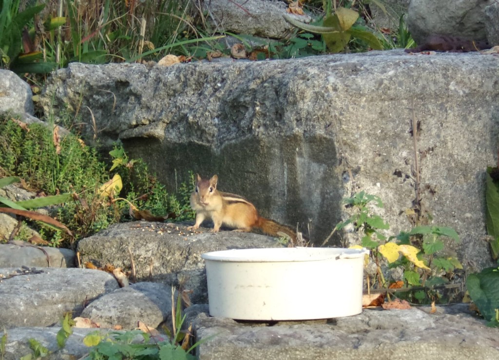The third and fourth shots are of a little chipmunk I feed every day. This little creature lives in my rock garden and has many many exits and entrances and he zips all around in and out as he pleases. I wish I knew what his home was like from the inside!