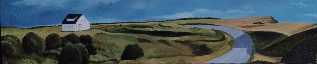 By Magdelene van den Oetelaar Summer is a great time to go on a road trip. This is a scene done in oil from a drive through the maritime provinces.