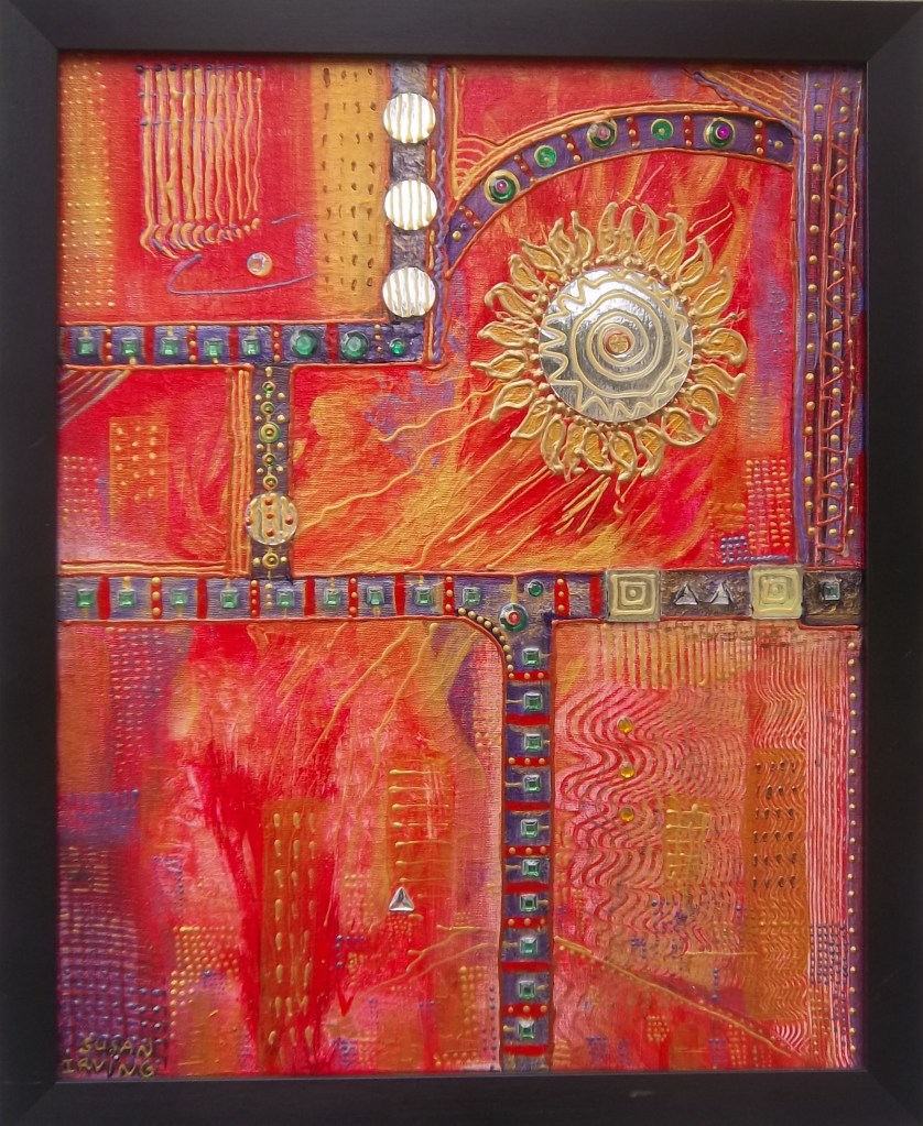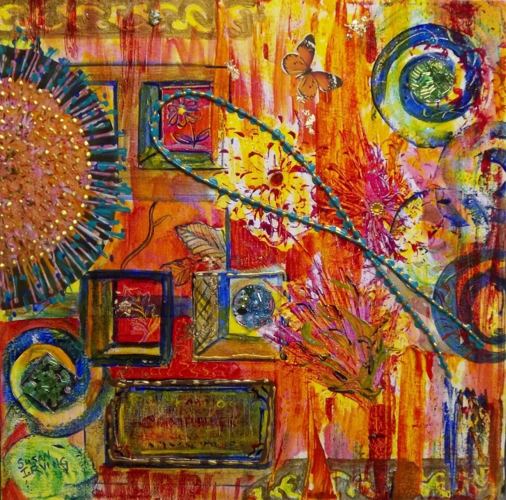 By Susan Irving OK. My thoughts on Summer. The first four are all mixed media works I have done in the past and express my impressions about the colours and heat of the summer.