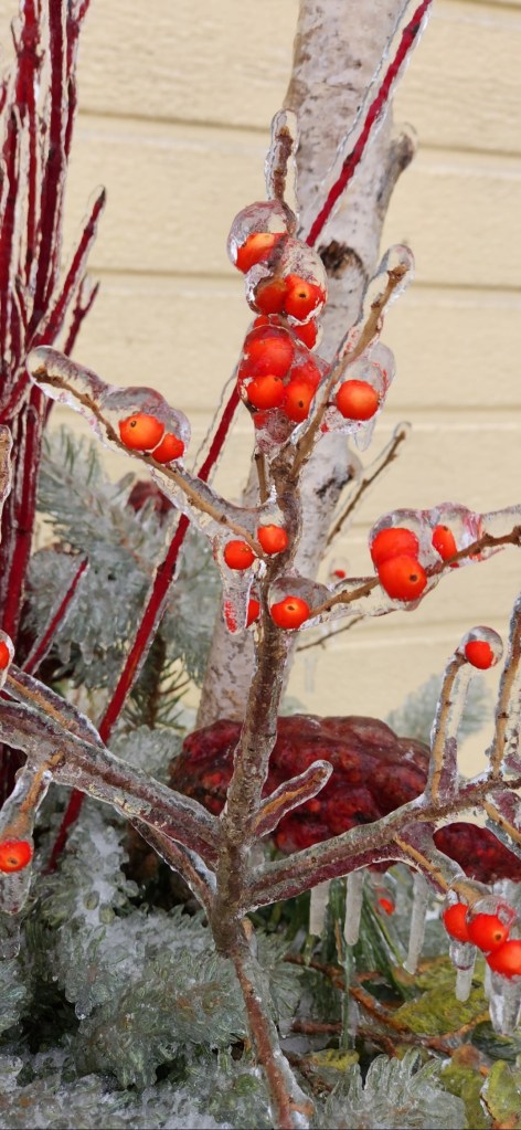 #2 are some little red berries growing just beside the frozen flowers.  Need to suss these out at the same time.