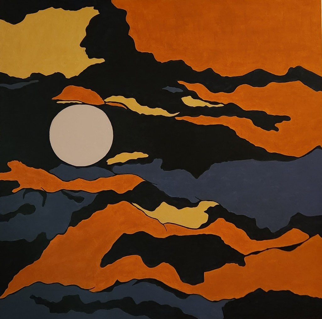 Moon Play, Acrylic on canvas, 36 x 36″