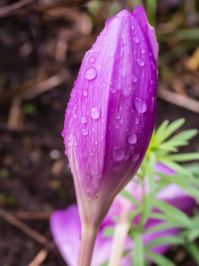 Finally, an Autumn Crocus in the rain, also from Edwina’s garden.