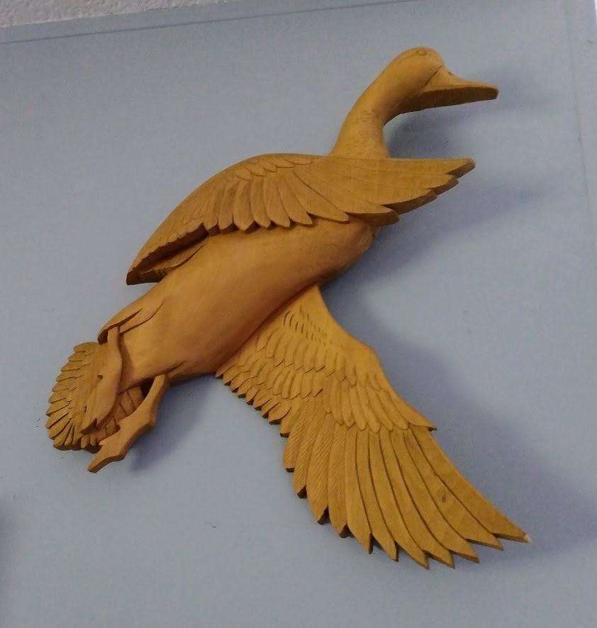 The flower carving was done in later years and the goose in flight was the beginning of Michel’s turnaround from bas-relief carving to ‘in-the-round’ or 3-dimensional carving.