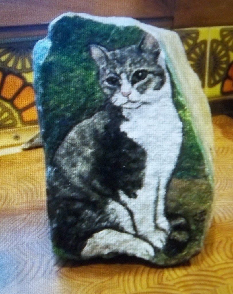 I use regular acrylic paints and apply several coats of a good outdoor varnish to protect them if they are to be used as garden decorations. Fortunately (or not)  Glengarry has a more than adequate supply of rocks!