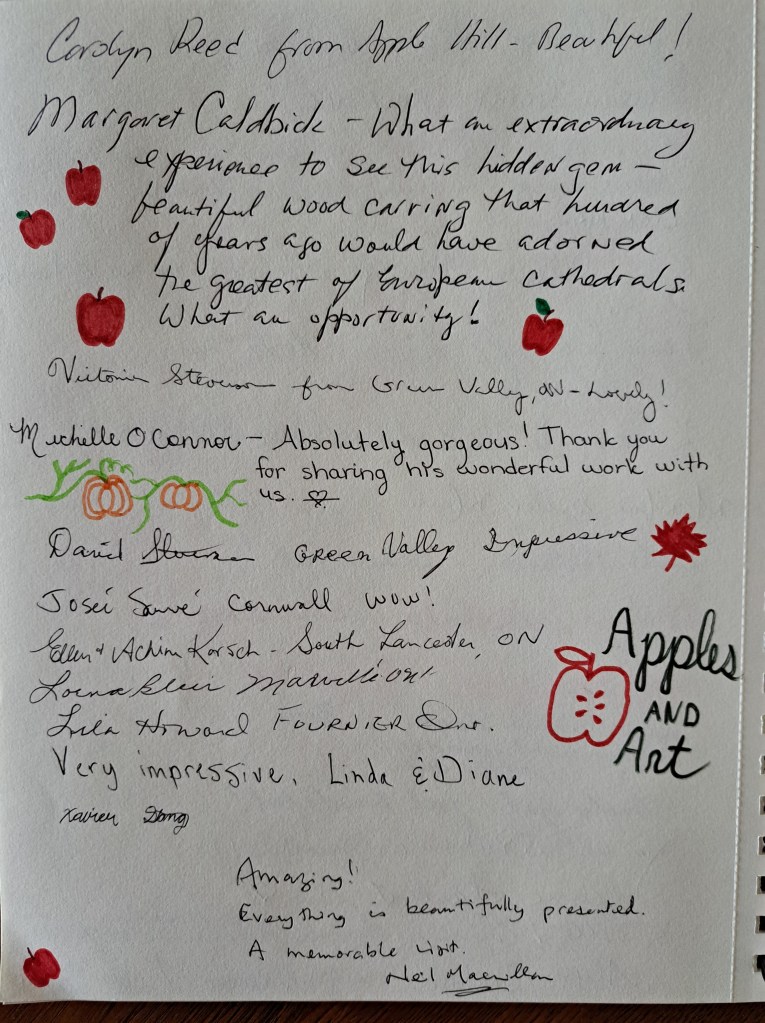 I very much enjoyed my visit to your lovely home and B&B for Apples and Art. The carvings are so unique and simply amazing, your stamp art is fun and whimsical and the muffins were delicious!