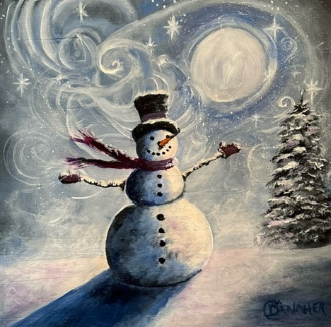 Recently, though, I had the urge to attempt some mystical winter scenes. For those who know me, you’ll understand what a challenge that was considering winter isn’t my favorite season! I also decided to attempt to paint on non-canvas materials. Another challenge!😊