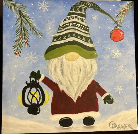 The Christmas gnome creations are done on prefab wooden 11 x 11″. They were super fun to paint!🌲💕