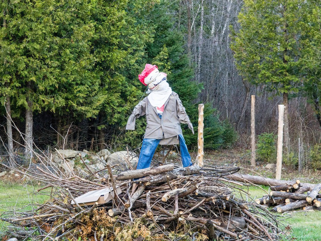 We recently (5 November!) went to a Guy Fawkes potluck party on Kenyon Concession #1. [Guy Fawkes Night is an annual commemoration observed on 5 November, primarily in Great Britain, involving bonfires and fireworks displays. An effigy of “The Guy” is set aflame. Ed.] A nice evening with unseasonably warm weather to sit around a giant fire with a drink before enjoying the food.