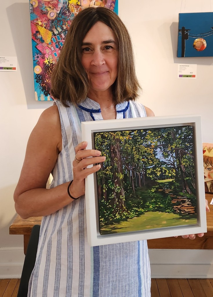 Our 3rd Annual Juried Show closed today. The People’s Choice Award goes to Michelle O’Connor for The Clearing , acrylic on birch wood, 10 x 10”.